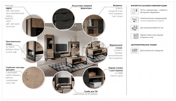 Модульная гостиная Стокгольм Дуб гранж песочный/Железный камень (Империал) - за 44 840 руб. в Выксе. Купите на сайте vyksa.onlinemarketmebeli.ru или по телефону 8(800)505-30-63 уже сегодня! Уточнить наличие, комплектацию, актуальную цену можно бесплатно у менеджера ежедневно. Закажите Модульная гостиная Стокгольм Дуб гранж песочный/Железный камень (Империал) до конца акции! Доступна покупка в кредит, рассрочку. Доставим со склада или на заказ.