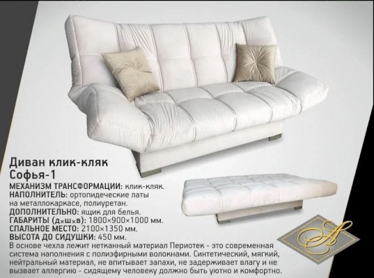 Клик Кляк Софья-1 (Асмана) - за 51 682 руб. в Выксе. Купите на сайте vyksa.onlinemarketmebeli.ru или по телефону 8(800)505-30-63 уже сегодня! Уточнить наличие, комплектацию, актуальную цену можно бесплатно у менеджера ежедневно. Закажите Клик Кляк Софья-1 (Асмана) до конца акции! Доступна покупка в кредит, рассрочку. Доставим со склада или на заказ.