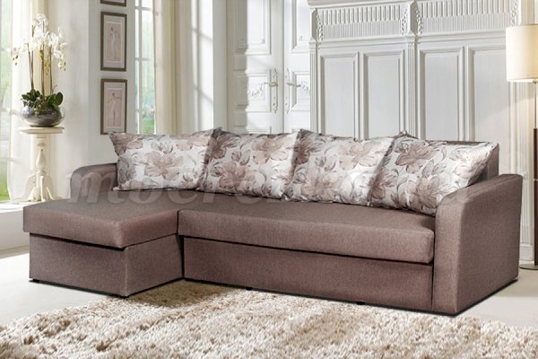 Угловой диван для современного дизайна в сдержанных строгих формах. Имеет небольшие габариты, что позволяет его использовать как в качестве места для отдыха, так и в качестве постоянного спального места. В комплект входят декоративные диванные подушки, которые могут быть обшиты различным материалом. Они придают дивану особый шарм и делают его весьма комфортным.
