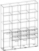 Применение задней стенки из ЛДСП (в ячейках с ящиками и фасадами) позволяет использовать данный стеллаж для зонирования пространства (чтобы предотвратить опрокидывание, необходимо обеспечить крепление стеллажа к стене).