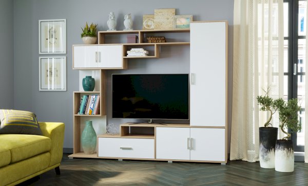 Гостиная "Пекин" - это функциональная, но при этом компактная малогабаритная зальная стенка. Все элементы гостиной устанавливаются на регулируемые ножки-опоры.
