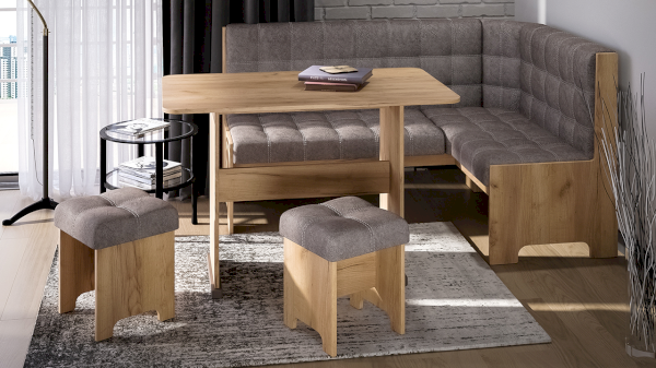 Кухонный уголок «Флорида» станет отличным решением не только для кухни, но и для любого другого помещения, которое требуется оборудовать местом для сидения. Он позволит рационально использовать пространство. Сборка скамьи в этом наборе возможна как на левую, так и на правую сторону. Благодаря наличию ящиков под сиденьями, данная модель создает дополнительную возможность для хранения различных вещей.
