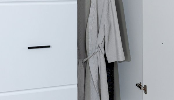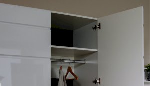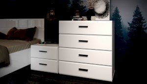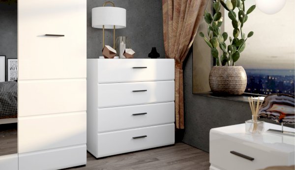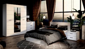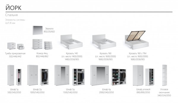 Спальня Йорк отличается стильным европейским дизайном. Глянцевые белые фасады High Gloss из МДФ отражают световые потоки, спальня выглядит динамично, воздушно и легко, что актуально для небольших помещений. Строгая горизонтальная фрезеровка украшает фасады, а контрастные черного цвета ручки и задняя стенка делают спальню особенно выразительной. Спальня универсальна, сочетается с любой мебелью и отделкой. Состоит из отдельных модулей, благодаря чему можно легко подобрать мебель для комнаты любого размера. Выполнена из экологически безопасных и надежных материалов.
