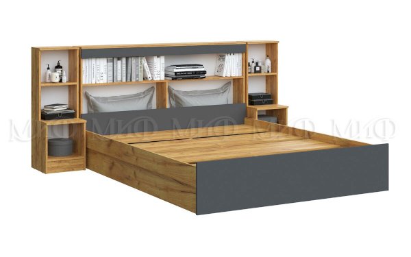 Кровать 1.6 с надстройкой с тумбами Бася (Миф)
