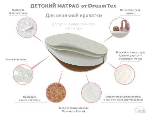 Матрас для овальной трансформации кроватки Dreams 8в1 (Стандарт - 73х125 см, Премиум - 63х119 см).