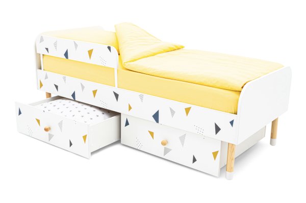 Для обеспечения дополнительной безопасности малыша во время сна можно приобрести съемный бортик. Особенность его в том, что он закрывает кровать не по всей длине, а только ее часть, благодаря такому конструктиву, ребёнок легко сможет сам забираться на свое спальное место.