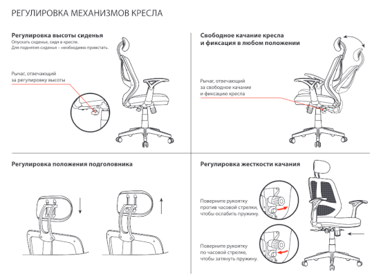Помимо этого кресло оснащено регулируемым подголовником.
