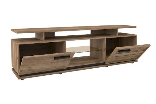 Стильная и аккуратная тумба гармонично впишется в интерьер гостиной в стиле Лофт. Визуально легкая конструкция не загромождает пространство и делает его более функциональным. Динамику Тумбе ТВ задает комбинация открытых поверхностей и глухих фасадов. Откидные фасады на кронштейнах. На ней без труда поместится телевизор с диагональю до 75''. Завершающий стильный элемент тумбы под телевизор - составной контрастный цоколь.