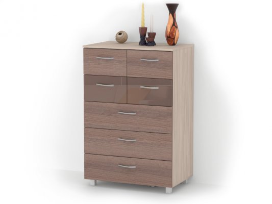 Данное изображение представлено в следующих цветах: корпус ЛДСП - Ясень Шимо светлый, фасад ЛДСП - Ясень Шимо тёмный, фасад МДФ - Капучино глянец.