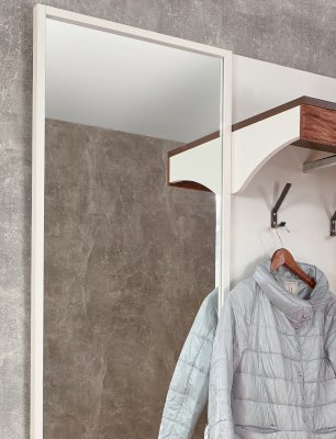 Повесить зеркало на стену — хорошая идея, особенно в маленькой прихожей, где места для большой конструкции на подставке просто нет. Большое настенное зеркало визуально увеличит размер прихожей и даст возможность посмотреть на себя при выходе из дома. Норвуд 75 Зеркало навесное можно навесить как вертикально, так и горизонтально.
