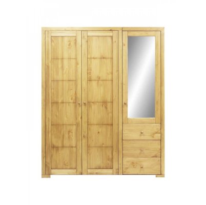 Трехстворчатый шкаф для вещей из коллекции “Калипсо” удачно впишется в интерьер загородного дома или небольшой квартиры. Он отличается простым, но при этом практичным дизайном. Внутри вы найдете отделение для одежды со штангой, секцию с полками и тремя ящиками. Шкаф состоит из 2 частей (двойное левое отделение и правое одиночное отделение).