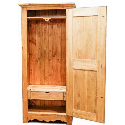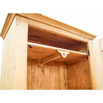 За дверью находится вместительное пространство со штангой и полкой для одежды (штанга прикреплена к верхней полке), а для мелочей имеется выдвижной ящик внизу.