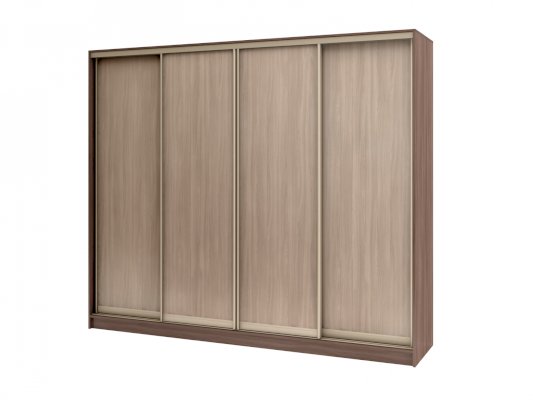 Данное изображение представлено в следующих цветах: корпус - Ясень Шимо тёмный, фасады - Ясень Шимо светлый, рамка двери и треки - Шампань матовая.