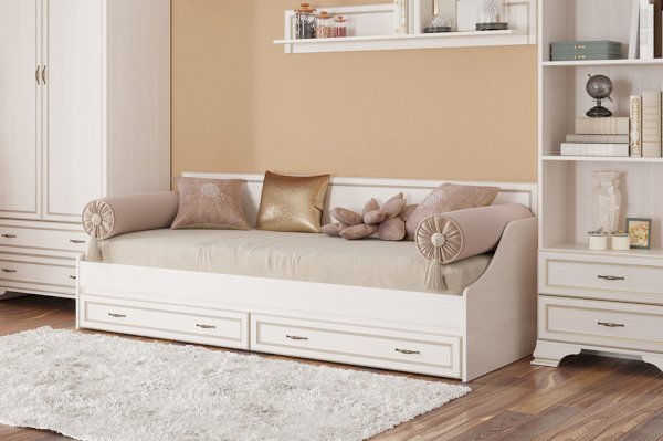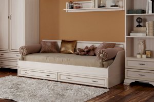 В модульной линейке Сиена вам доступна очень удобная односпальная кровать, которая будет актуальна для меблировки молодёжной комнаты, спальни или квартиры-студии. Дизайн диван-кровати гармонично впишется в любой классический интерьер.