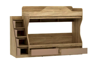 Модуль оснащен книжной полкой и вместительными бельевыми ящиками, что позволяет использовать их в качестве дополнительного места для хранения вещей. Лестница, которая входит в комплект состоящая их четырех ступеней-ящиков дает дополнительное место для хранения для игрушек и детских вещей. Ограничитель без острых углов на верхнем ярусе, обеспечит ребенку безопасный сон.
