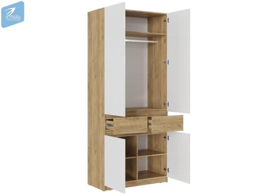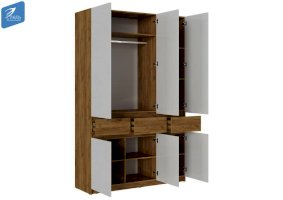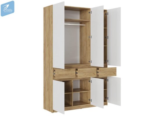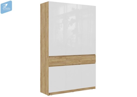 Шкаф 3 створчатый ШК-002 Бостон Дуб Крафт золотой/Глянец белый/Дуб Крафт золотой (МДФ)