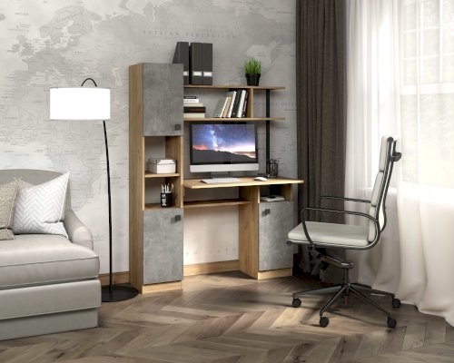 Пенал (дополнительная секция) превращает простой функциональный стол в полноценную рабочую зону, он вмещает закрытые полки для хранения документов и две ниши под дополнительную оргтехнику.