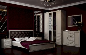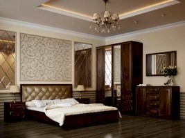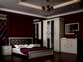 Кровать из серии Габриэлла. Изголовье кровати обшито велюром.