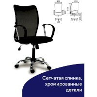 Спинка кресла выполнена из прочного сетчатого акрила. Материал обладает высокой воздухопроницаемостью, легко чистится, способен подстраиваться под физиологические изгибы спины, при этом сохраняет форму и не растягивается. Залогом комфортного использования кресла также является эргономичная форма надёжного металлического каркаса. В обивке сиденья использована технологичная ткань серии TW - сложный композитный материал толщиной 5-7 мм, состоящий из нескольких слоев тканных и нетканых компонентов. Материал отлично пропускает воздух, устойчив к износу, долго сохраняет цвет, неприхотлив в уходе.
