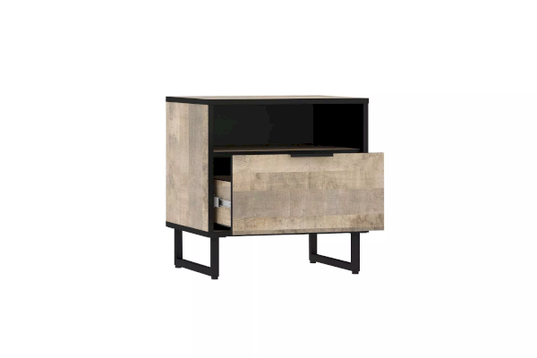 Прикроватная тумба из коллекции ФОЛК легко впишется в интерьер спальни в стиле Лофт, придав ей современный и монументальный вид. Черная лаконичная ручка подчеркивает оригинальный дизайн мебели, а черная кромка эффектно выделяет фасад изделия.