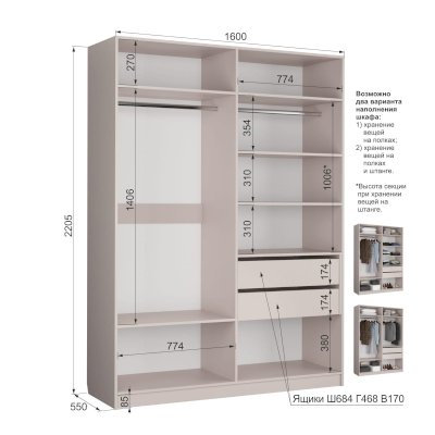 Наполнение шкафа выдвижные ящики / штанга