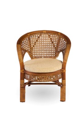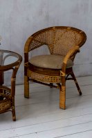 Кресло из натурального ротанга с подушкой и плетеной спинкой Пеланги.