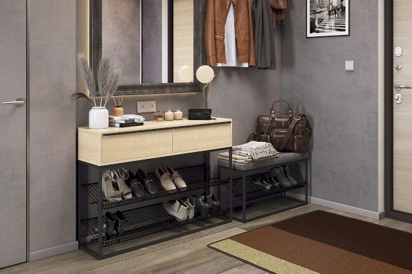 Удобная обувница в стиле Лофт из алюминиевого профиля. Изделие не разборное, одноразовая сборка алюминиевой конструкции.