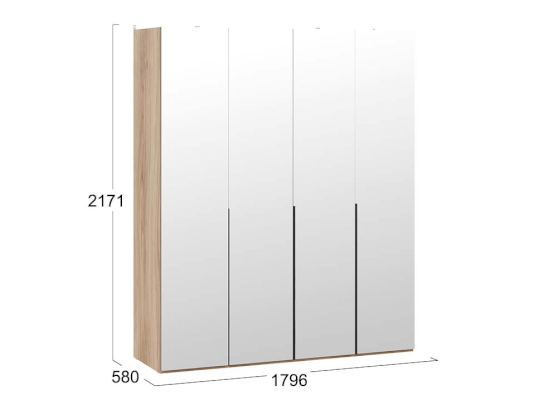 Шкаф для одежды с зеркальными дверями 580 Порто СМ-393.07.109 (ТриЯ)