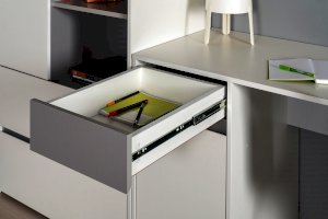 • Отсутствие ручек - мебель открывается за край фасада