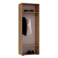 Невероятно элегантная модель шкафа Флай станет практичным решением для хранения вещей в любой комнате. Корпус изделия выполнен из ЛДСП в цвете дуб сонома. Одна створка распашных дверок выполнена из матового ЛДСП белого цвета, а вторая декорирована зеркальной плиткой с фацет-обработкой. Внутренне наполнение состоит из двух вместительных полок, между которыми находится ниша со штангой для размещения вещей на вешалках.