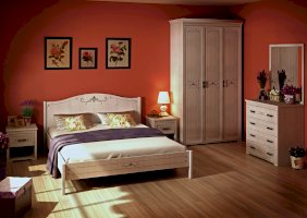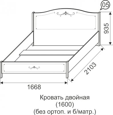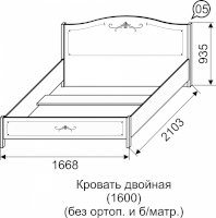 Двуспальная кровать из коллекции «Афродита» привнесет в Вашу спальную комнату легкость и очарование прованса. Простая и при этом утонченная, она создаст романтичное настроение и воздушный облик Вашей спальни. Обрамление на спинке и подножии кровати в виде элегантного декора придает дополнительную изящность, а простые ножки не утяжеляют ее внешний вид.