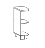 Глубина верхних шкафов указана без учета фасада, высота столов указана без учета столешницы