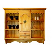 Классический навесной шкаф из прованской коллекции. Шкаф удобен для хранения посуды, салфеток, бокалов. Он прекрасно сочетается с другими элементами коллекции. По бокам - две открытые ниши, в центре шкафа дверь с полкой и два малых ящика.