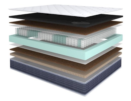 Наполнитель: Высокоэластичная пена с эффектом памяти Memorix, кокосовая койра, НПБ 256 шт/кв.м., система усиления боковой поддержки, ППУ, перфорированный латекс Latex Perfo