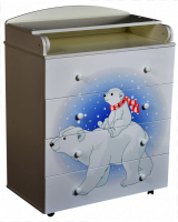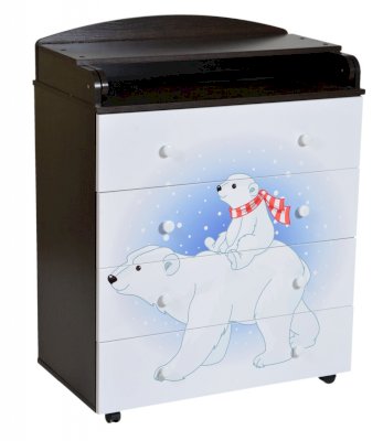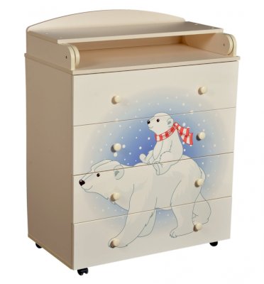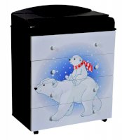 Пеленальный комод 800/4 Lilu 1 отличается привлекательным дизайном с использованием тематических детских принтов. В конструкции изделия предусмотрены 4 маленьких передвижных колеса, несколько вместительных ящичков на шариковых направляющих и откидывающаяся пеленальная столешница. Детский пеленальный комод, декорированный красочным рисунком, вмещает в себя постельные принадлежности, средства гигиены, распашонки, подгузники, игрушки, ползунки и другие личные вещи ребенка. Гладкая столешница идеально подходит для пеленания ребенка, а колесики позволяют быстро перемещать комод.