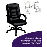 Надежный механизм качания "Top Gun" гарантирует хорошую поддержку спины и поясницы за счет возможности свободного качания с фиксацией в одном рабочем положении и регулировку угла наклона под вес сидящего.
