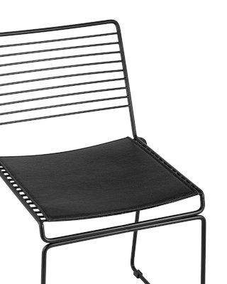 Современная модель стула Danny подходит как для интерьера обеденной зоны дома, так и для кафе или ресторана. Спинка и сидение выполнены из металлических прутьев черного цвета. Подушка изготовлена из черной экокожи в тон каркасу. Ножки выполнены из металла в тон сидения и имеют подставки, которые предотвращают скольжение по поверхности пола. Обратите внимание, данный стул можно стопировать, что помогает экономить место при хранении.
