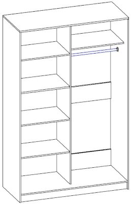 Данное изображение представлено в следующих цветах: корпус - Венге Цаво, фасады - зеркало, рамка двери и треки - Серебро матовое.
