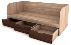 Корпус и подматрасник - ЛДСП 16 мм с кромкой ПВХ 0,4 мм и 2,0 мм.