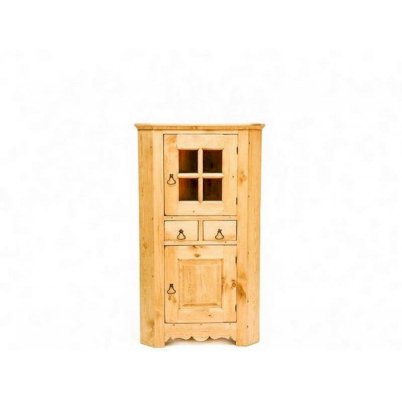 Древесина сосны, из которой он изготовлен, словно впитала в себя уют загородного дома, неторопливость вечерних чаепитий и уютную атмосферу. В этом шкафу разместится как посуда, так и полотенца, салфетки, домашние заготовки и книги с рецептами. Установленный в угол, шкаф не займет лишнего места на вашей кухне или в гостиной.