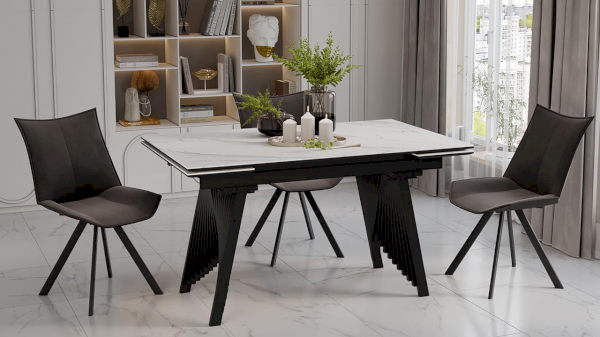 Стол имеет синхронный механизм раздвижения с торцевыми вставками по бокам. Это выручает в моменты прихода гостей, которых хочется разместить свободно и с комфортом. Процесс сборки стола минимальный, столешница поставляется уже в собранном виде, остается только прикрутить опоры.