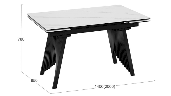 Столешница и торцевые вставки выполнены из МДФ 16 мм с керамогранитом 6 мм. Керамогранит отличается высокой прочностью, долговечностью, надежностью и термостойкостью. Он не требует особого ухода и не подвержен повреждениям при регулярном использовании. Опора необычной формы выполнена из металлических трубок, соединённых между собой в единую плиссированную конструкцию и окрашена порошковой краской «Черный муар».