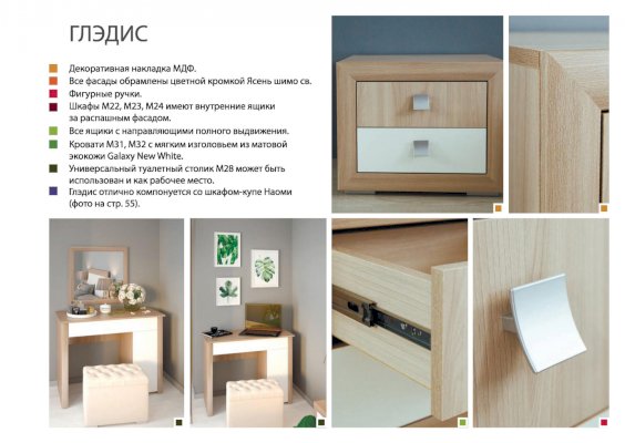 Модульная спальня Глэдис (Риннэр) - за 85 092 руб. в Выксе. Купите на сайте vyksa.onlinemarketmebeli.ru или по телефону 8(800)505-30-63 уже сегодня! Уточнить наличие, комплектацию, актуальную цену можно бесплатно у менеджера ежедневно. Закажите Модульная спальня Глэдис (Риннэр) до конца акции! Доступна покупка в кредит, рассрочку. Доставим со склада или на заказ.